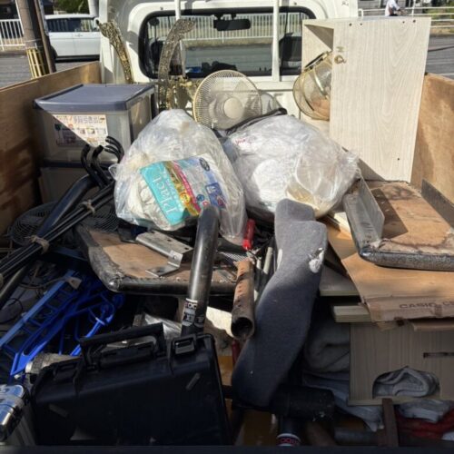 閉店後のテナントをまるごと空っぽにしてほしいとのことで扇風機、カラーボックス、制服、備品、照明器具、観葉植物…と、ありとあらゆるものを回収!